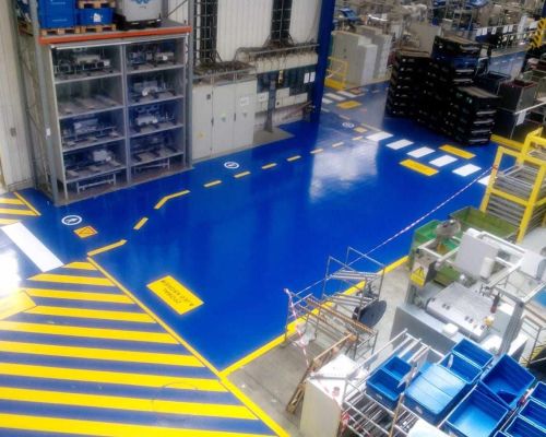 Beschichtungen sind im Vergleich zu Epoxidharzestrichen eine wirtschaftliche Alternative für Industrieböden. Es handelt sich um Zwei- oder Dreischichtsysteme für leichte bis mittlere Belastungen. Sie werden häufig zur Fahrbahnmarkierung eingesetzt.
