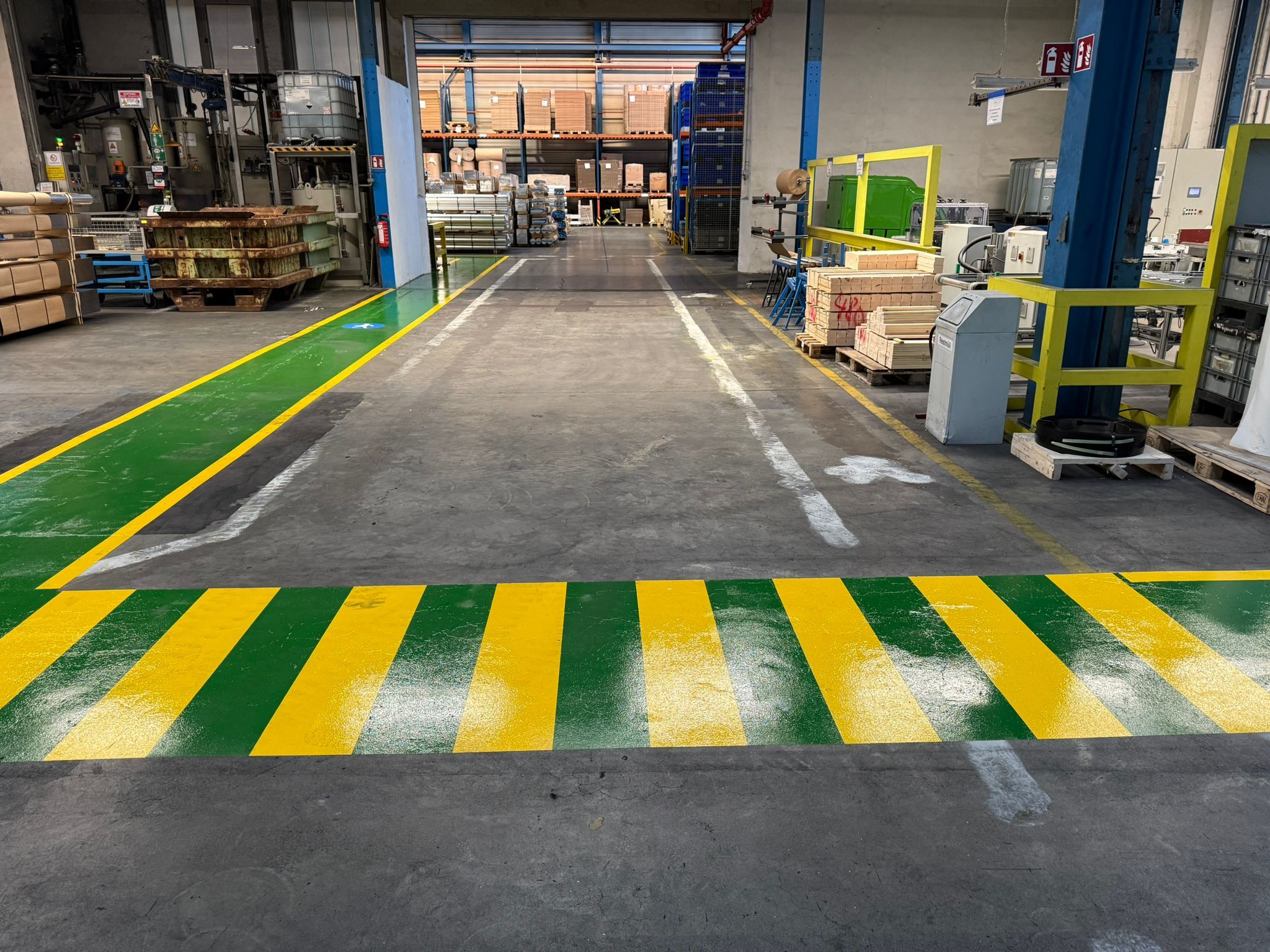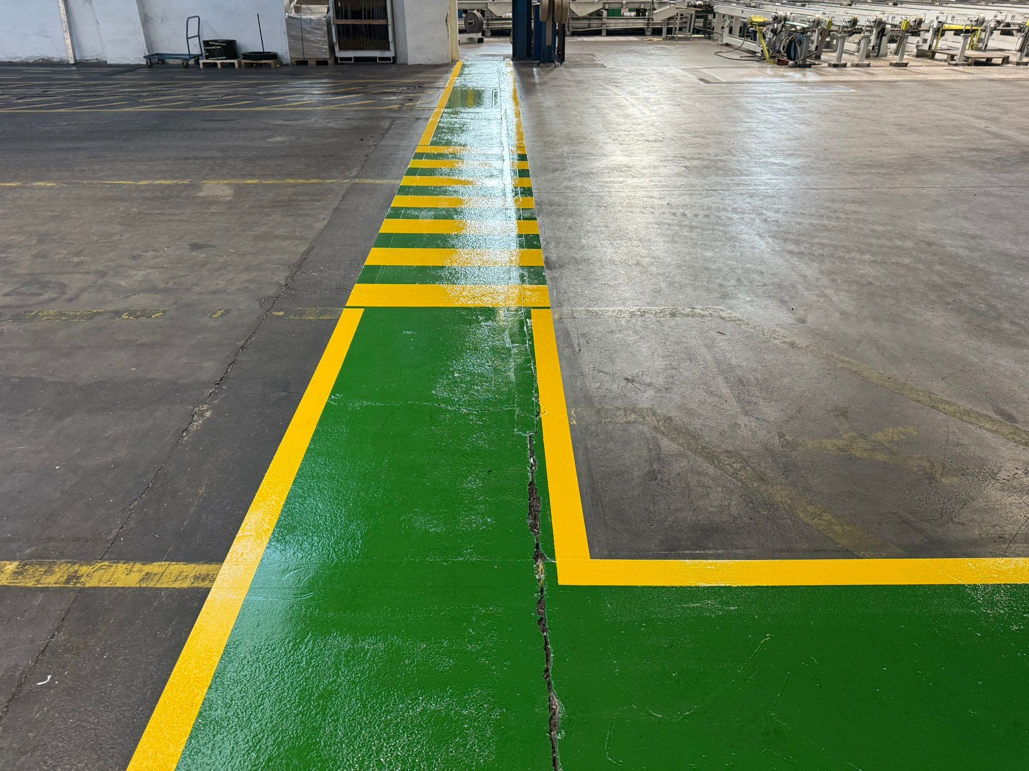 Grüne Fußgängerwege in Produktionshallen