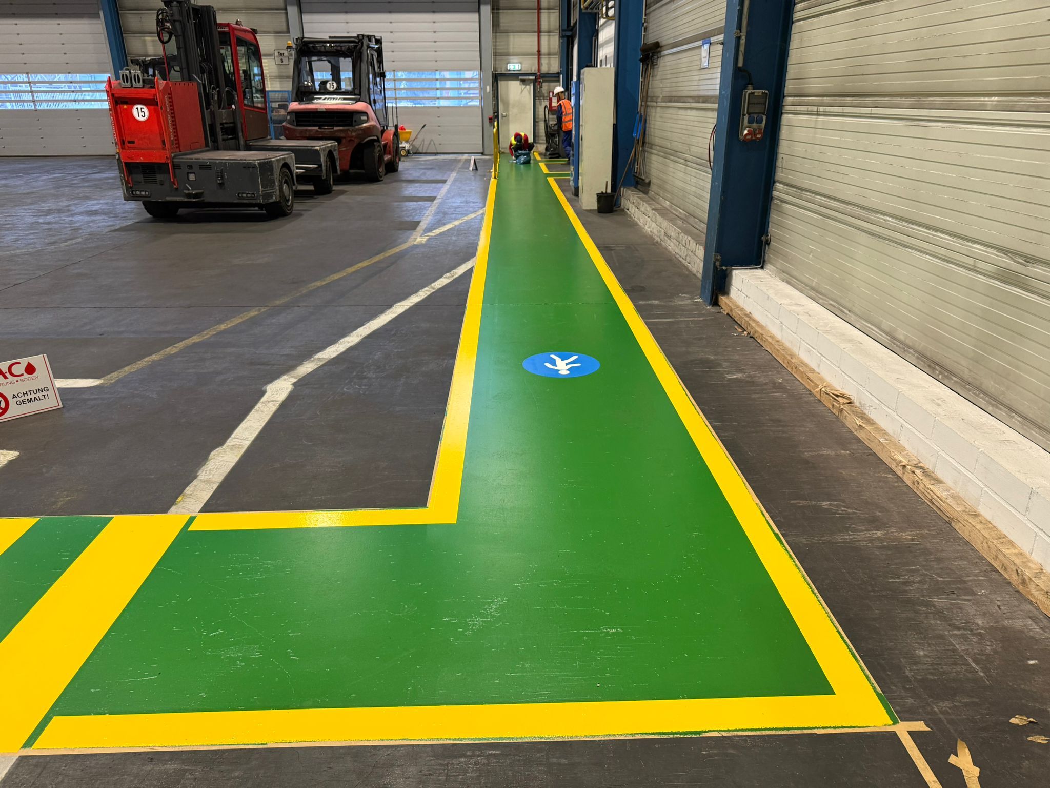 Kundeneingabe:Markierung von flächigen Fußgängerwegen (Kombination aus Grün und Gelb) innerhalb der Produktionsbereiche