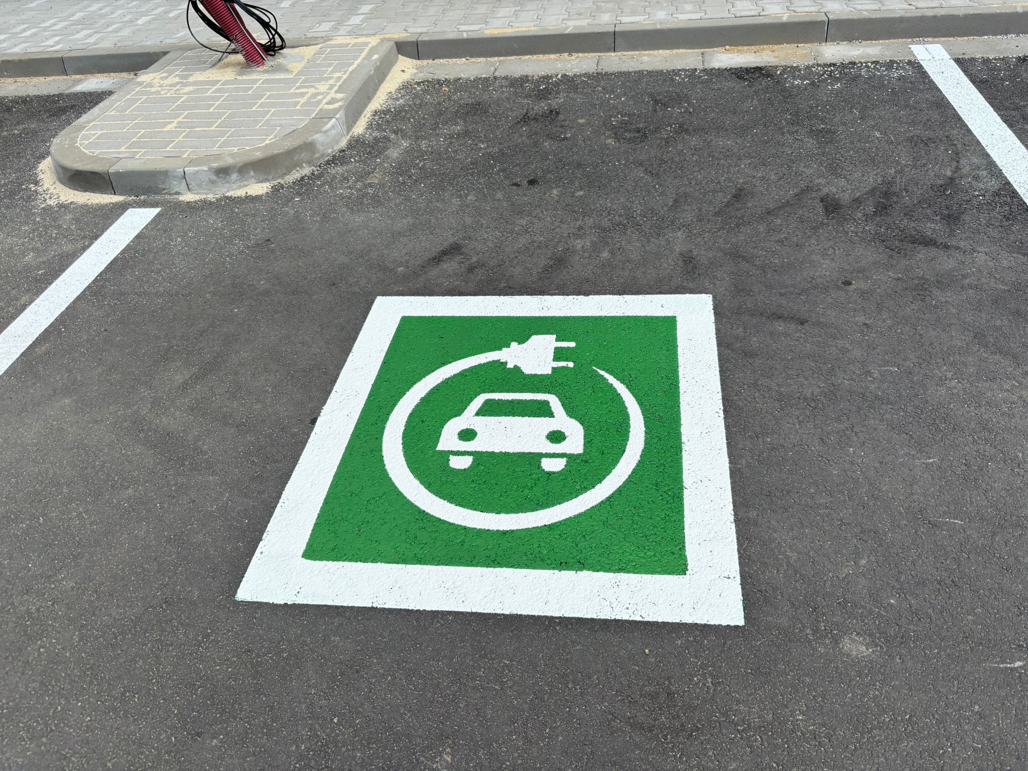 Kennzeichnung von Parkplätzen für Elektroautos und Produktionsflächen