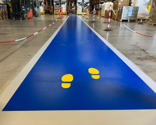 Markierung mit Mehrkomponentensystemen, Korridore in blauer Farbe