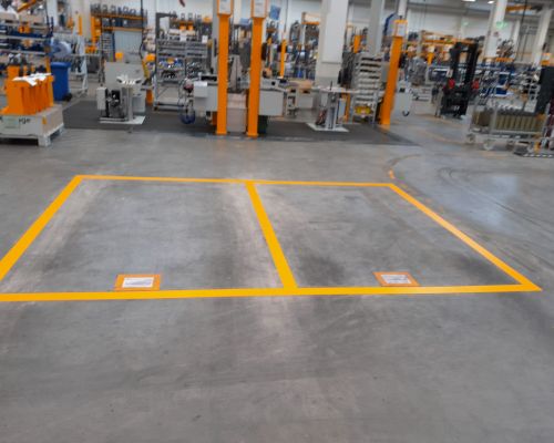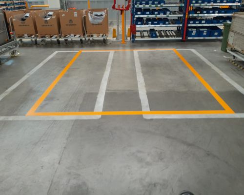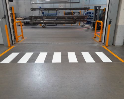 Vollständige Neumarkierung der Wege, Transportkorridore und Palettenstellplätze